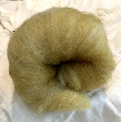A very generous 1 oz of homegrown and processed fiber made up of: 25% guanaco, 25% pygora, and 50% merino.
